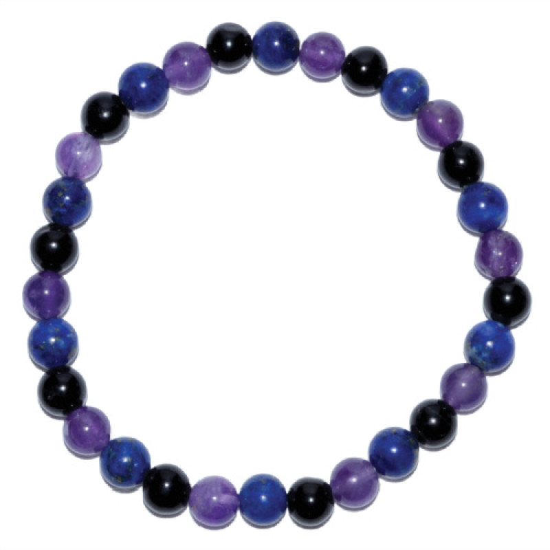 You wont want to take this beaded bracelet off after feeling the healing power it emits. Feel the benefits of all 3 powerhouse stones on one piece. Good for grounding, throat chakra, protection and calming just to name a few. 6mm Beaded bracelet with Amethyst, Lapis and Black tourmaline.