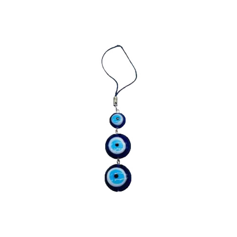 Evil Eye of protection with cascading glass eyes that are the same on both sides. Protect yourself and your energy with this great hanging piece. Hangs 5 1/2" with sizes that may vary.